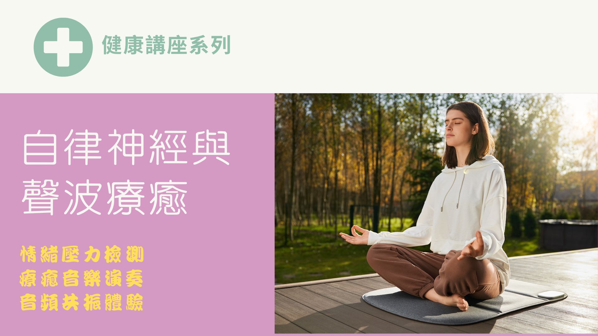 現場邀請音樂家帶來療癒演奏,並親身體驗科技音樂震動頻率,讓身心在音樂與共振中徹底放鬆,找回安定平衡的能量。